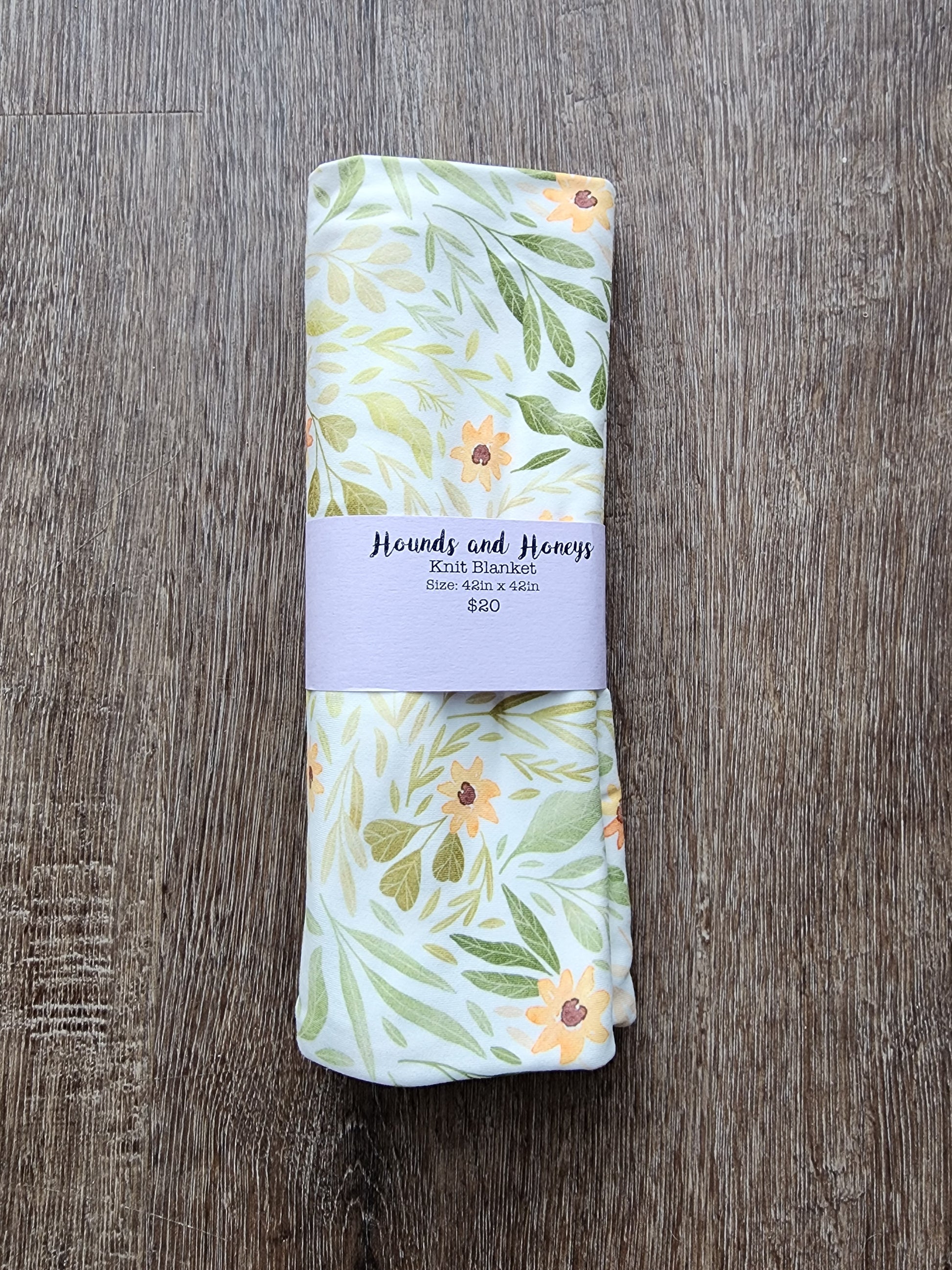 Soft jersey knit blanket with served edging and rounded corners. Makes for the perfect swaddle.