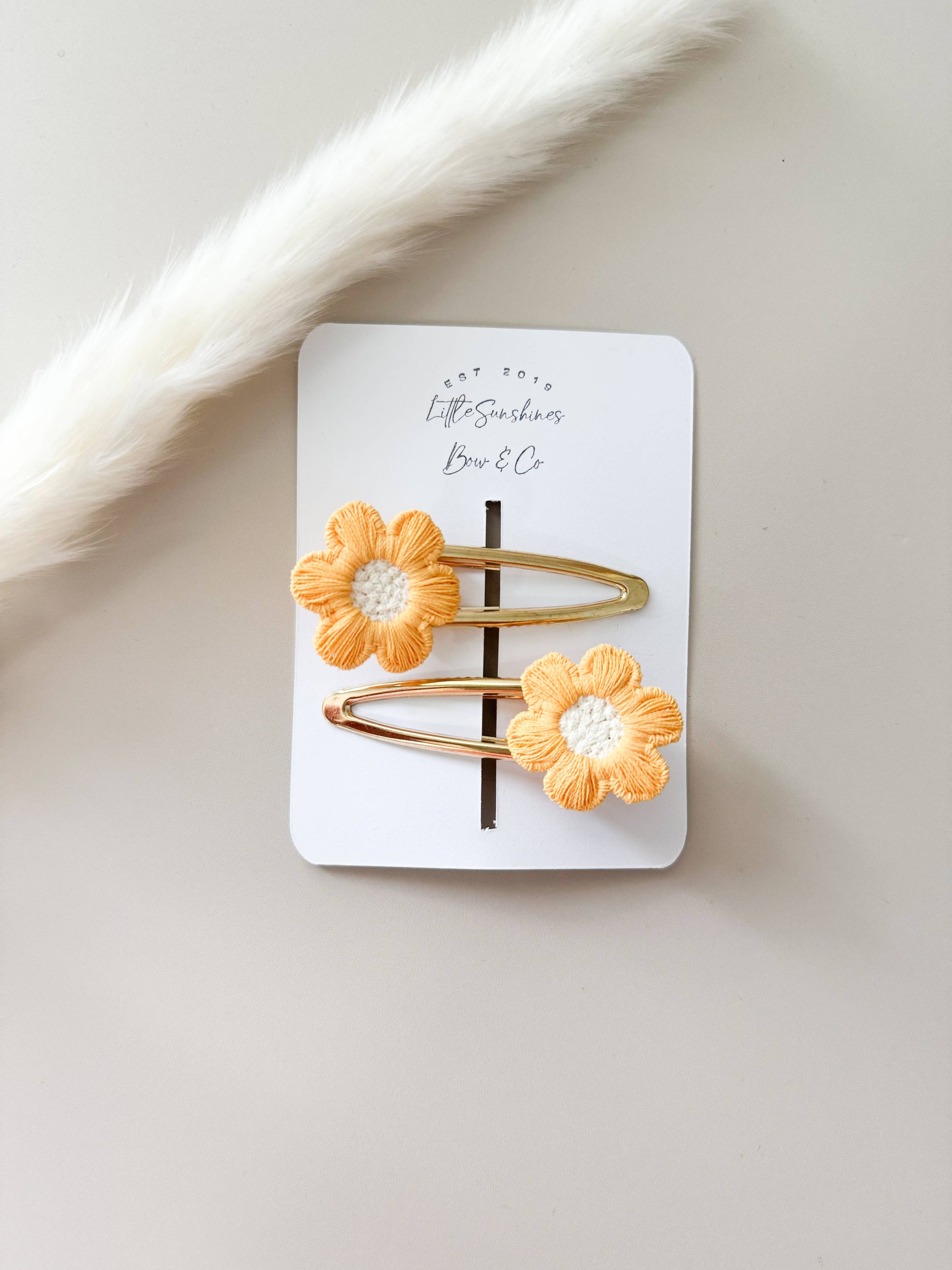 These flower embellishments are attached to a gold non slip alligator clip.