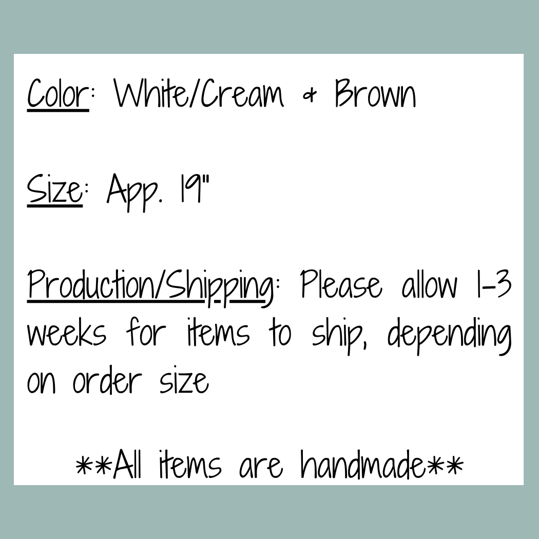Size: Approximately 19". Size varies due to the nature of handmade items.