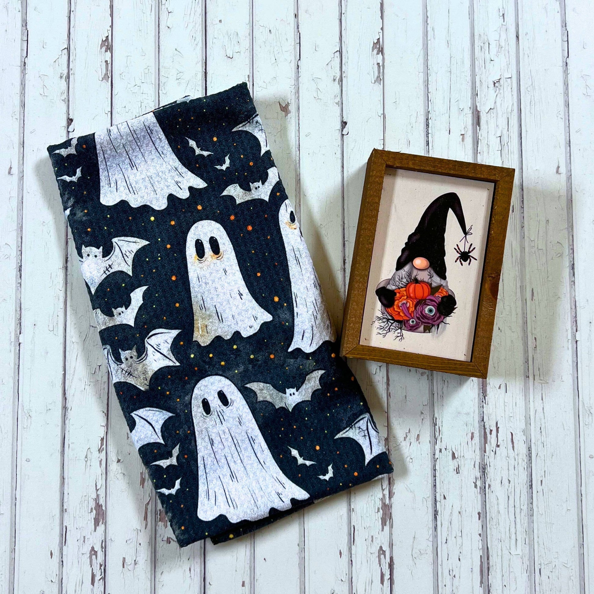 Halloween Ghost and Bat Waffle Tea Towel With Hanging Loop