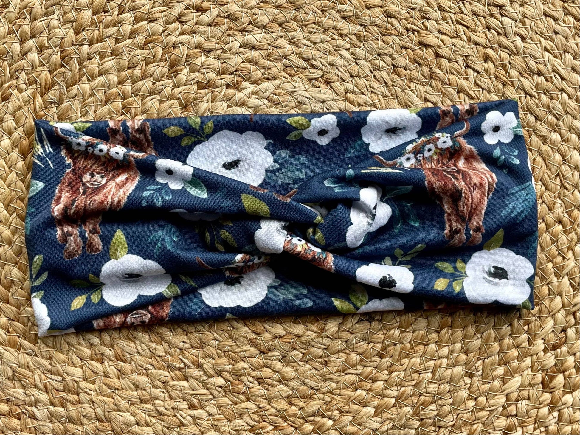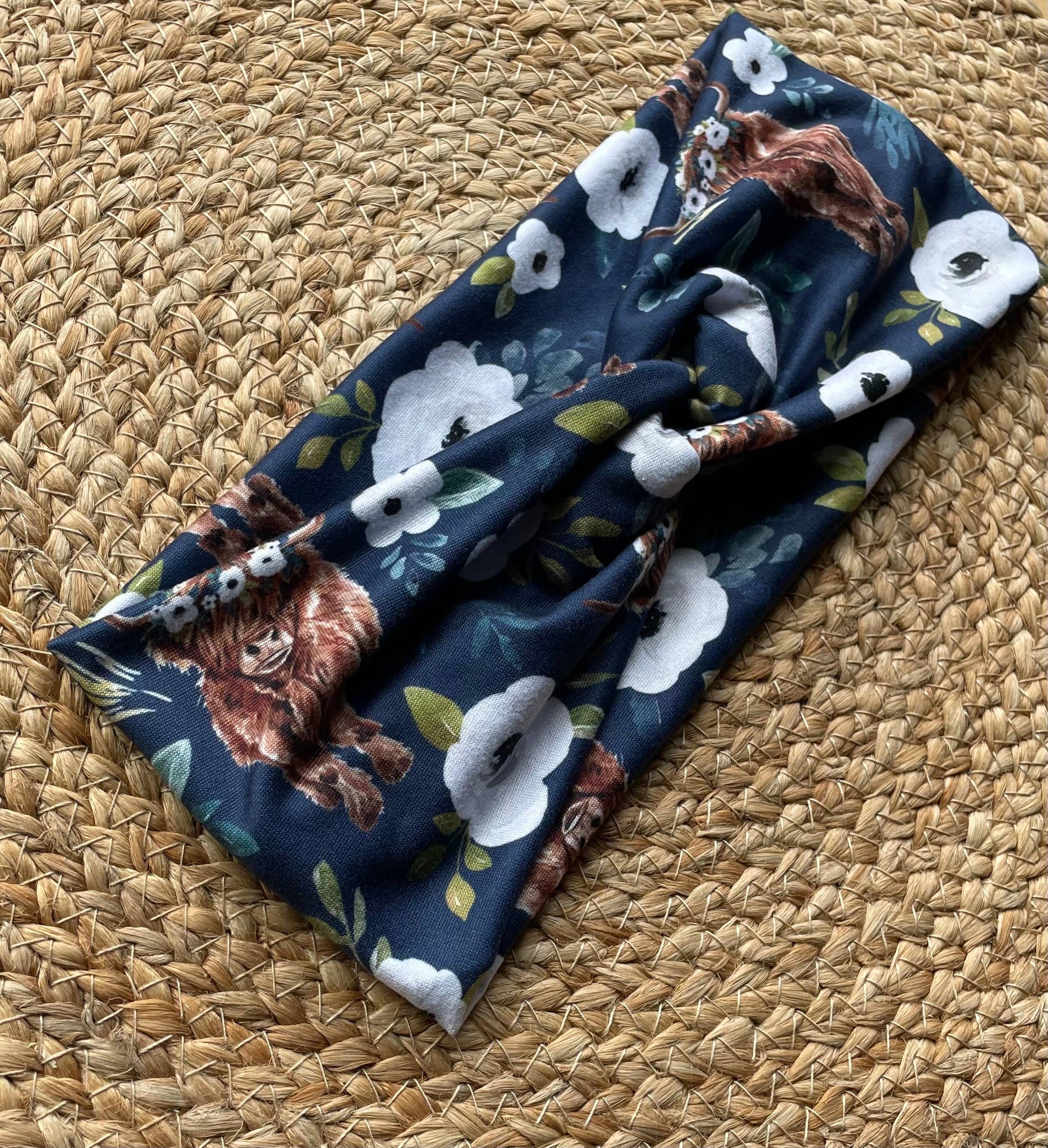 This soft knit headband is made from a designer polyester spandex fabric and is stitched to allow stretch. It is comfortable to wear all day! Exact patterns may vary.