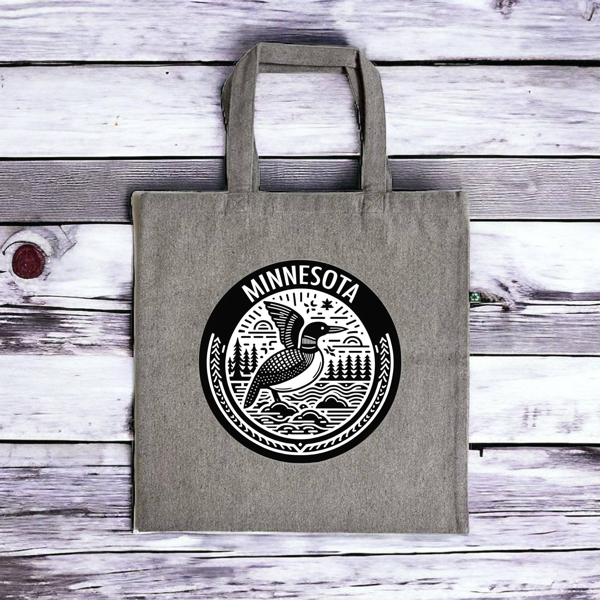 Minnesota Loon Black Circle Canvas Tote: Natural