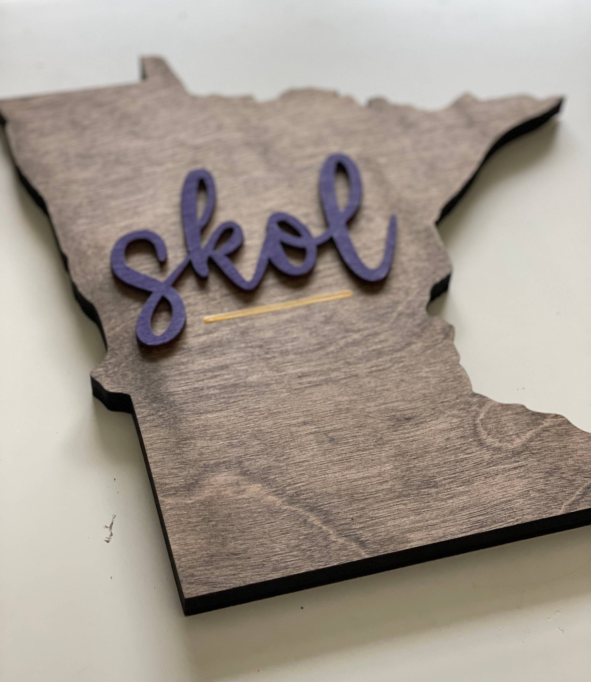 1/2 inch thick Minnesota state cutout with dark walnut stain.