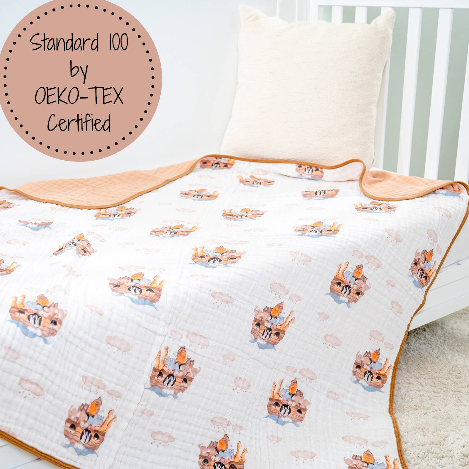 OEKO-TEX CERTIFIED - Our muslin quilts meet the requirements of Standard 100 by OEKO-TEX.