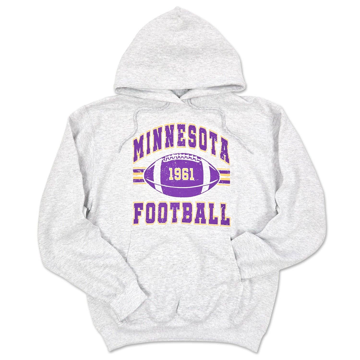 Unisex relaxed/classic fit. Super Comfy. Runs true to unisex sizing. A relaxed-fit, classic-shaped, pre-shrunk hooded sweatshirt. Ash grey hoodie with our VIKES design featured on the front in Purple + Gold. * 7.8-ounce, 50/50 cotton/poly fleece * Air jet yarn for softness * Two-ply hood