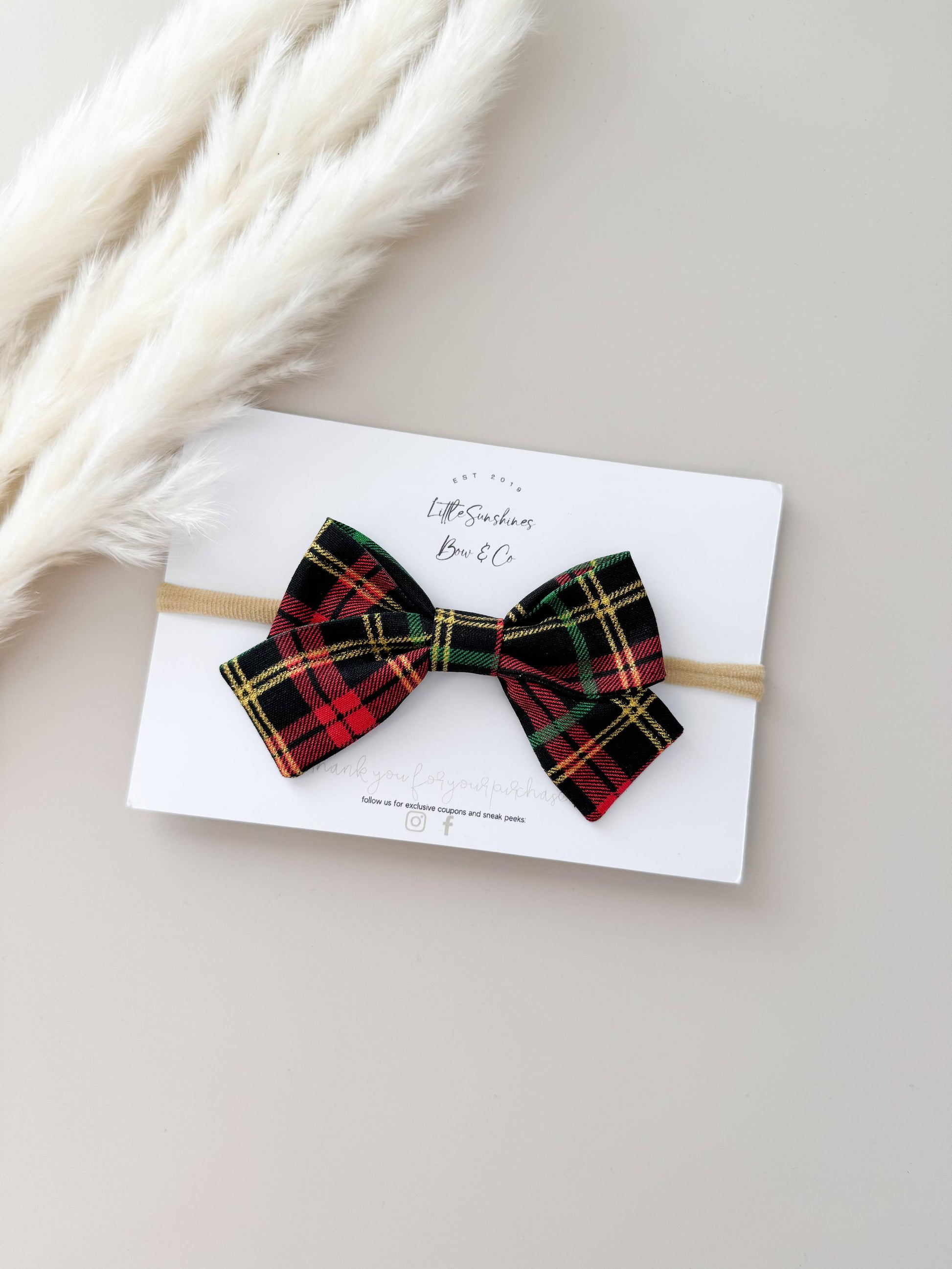 Red & Green Plaid Christmas Pinwheel Hair Bow: Nylon Headband