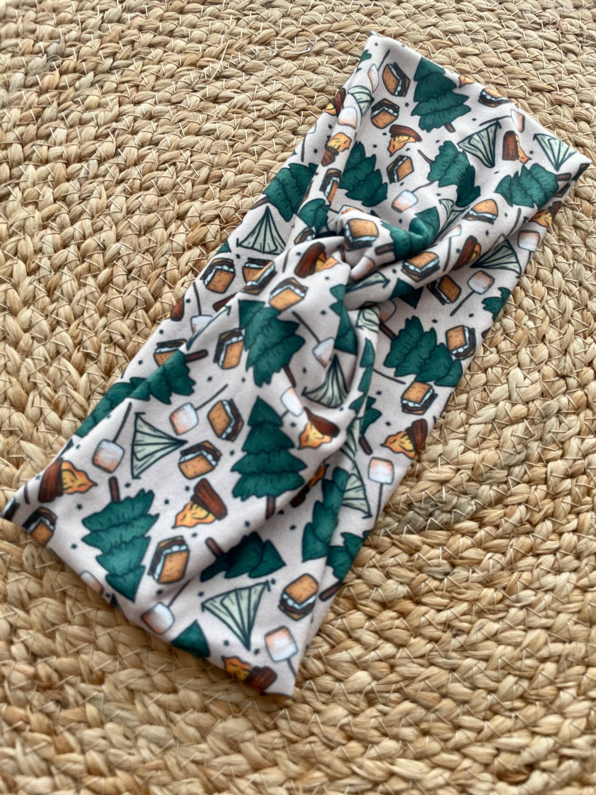 This soft knit headband is made from a designer polyester spandex fabric and is stitched to allow stretch. It is comfortable to wear all day! Exact patterns may vary.