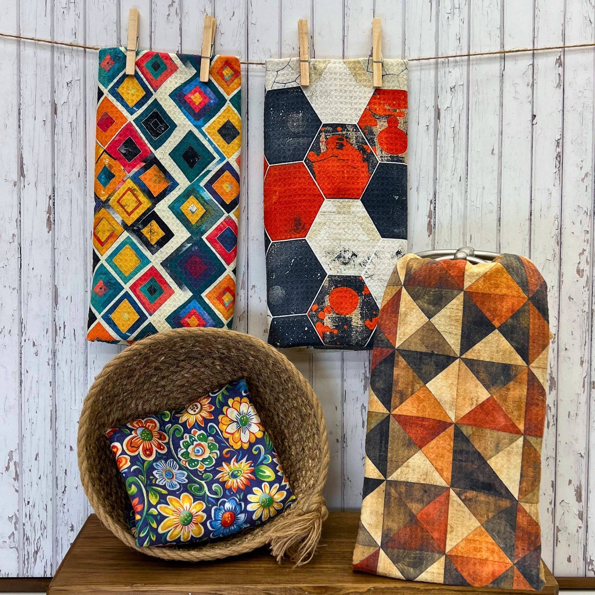 Southwestern Floral Pattern Kitchen Towel + Hanging Loop