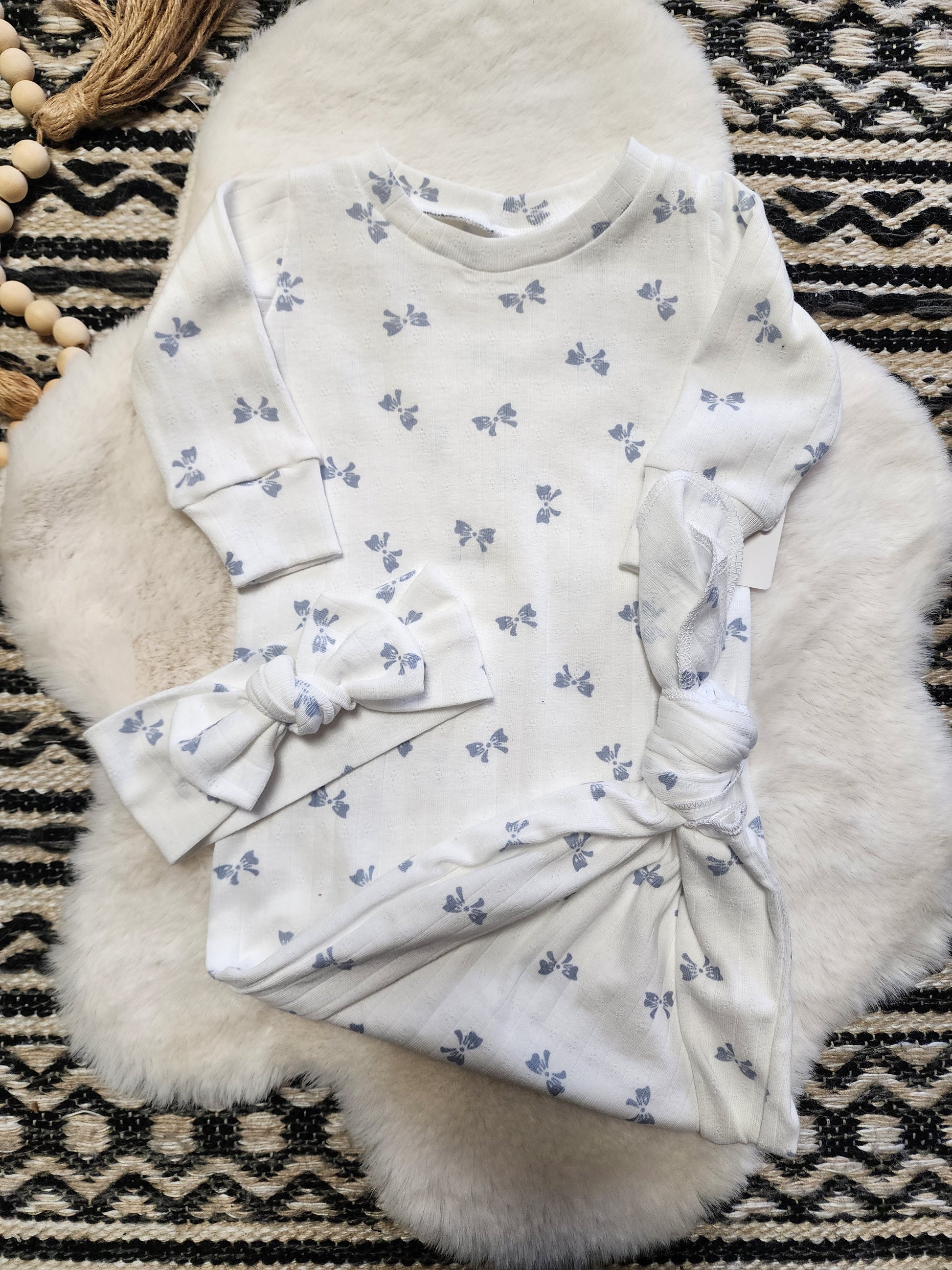 Tiny Blue Bow Pontinelle Knit Gown