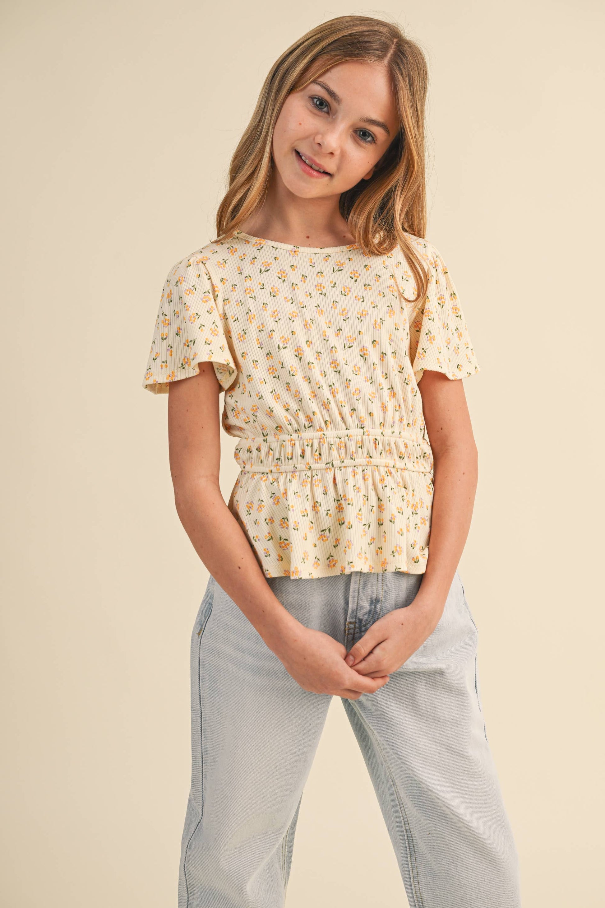 TWEEN KIDS GIRLS ROUND NECK FLUTTER SLV PEPLUM TOP