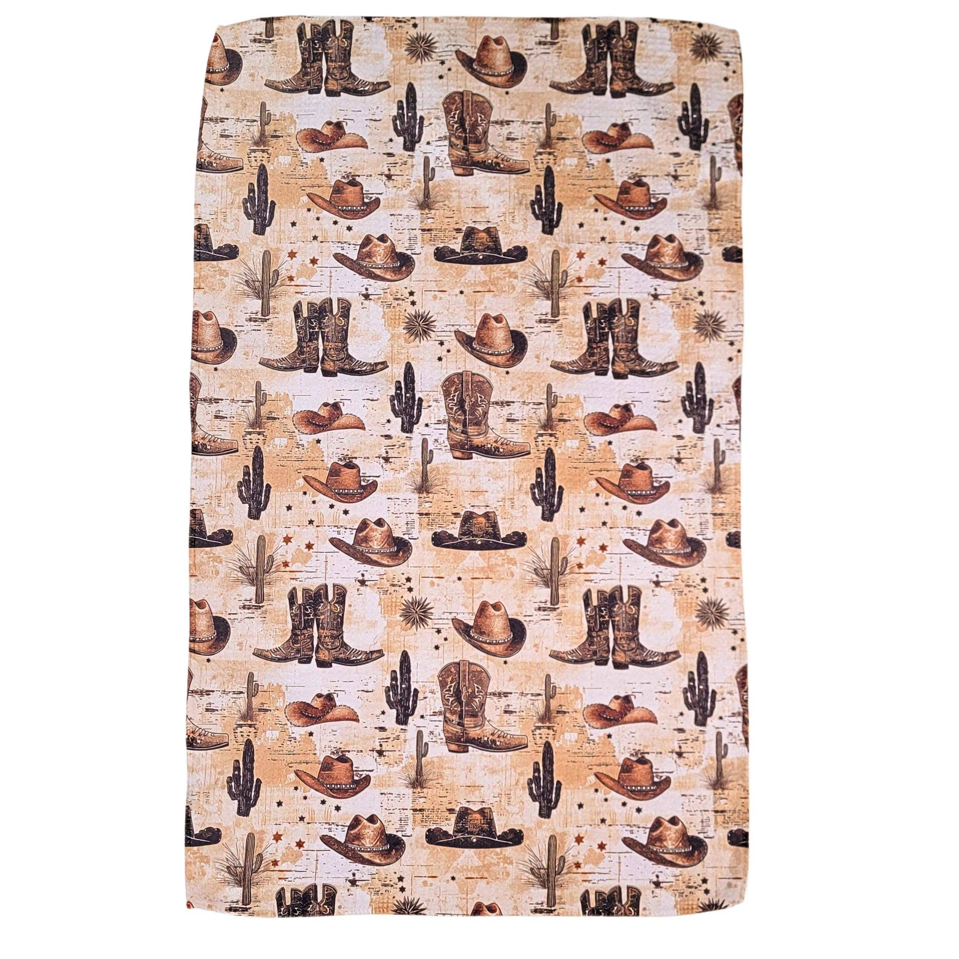 Western Cowboy Boots & Hat Waffle Weave Towels - Home Decor